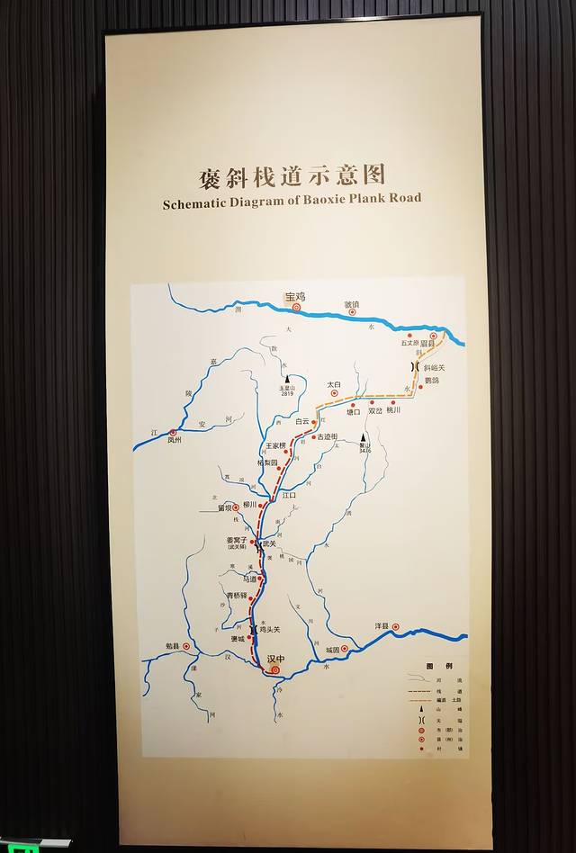 汉中市博物馆的古汉台馆区,有一个《褒斜古栈道陈列室》,通过褒斜道的路线走向、各种形制和沿途的基础设施这三个单元的展示,详尽地介绍了褒斜道的前身今世。