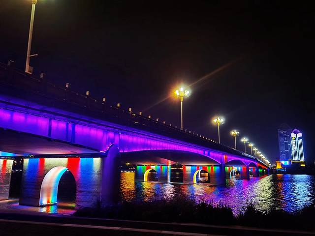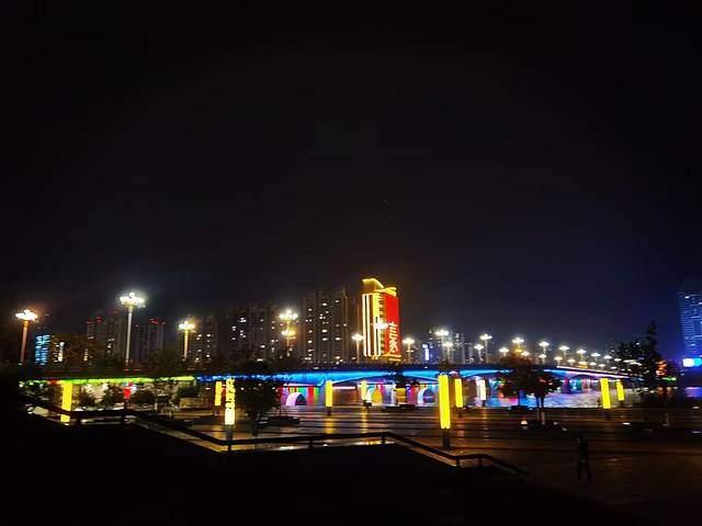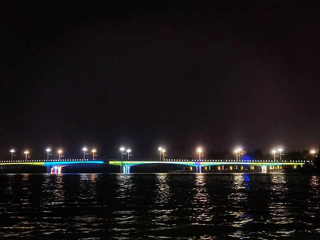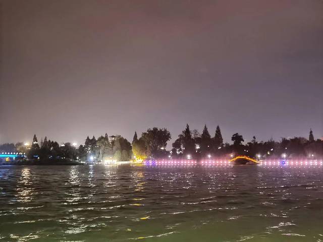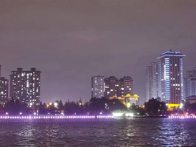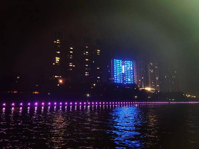 汉中有一个汉江游的项目,昼观生态岛屿,夜览音乐喷泉,全程约40分钟,60元/人,白天的线路往上游走,晚上的线路往下游走,我们选择了夜游。