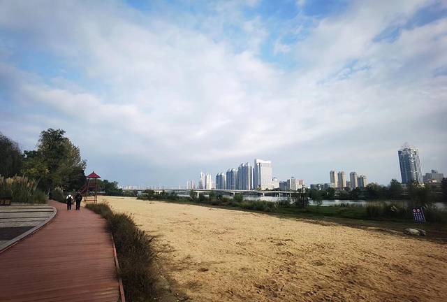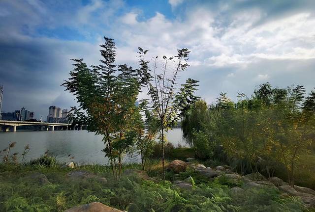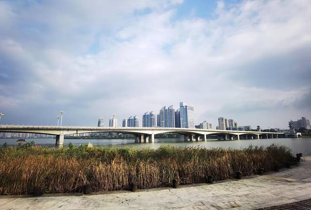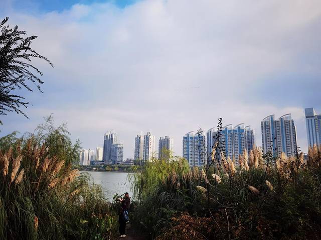 走在江边栈道,或登高远眺,或临岸近望,只见:江面波光粼粼、小岛漂浮水间,桥梁飞架南北、高楼耸立两岸,岸边绿树红花、江上鸟鸥飞翔,草滩比肩簇拥、芦苇随风摇曳,每年立冬后,成群集队的红嘴鸥还会如约而至,迁徙于此,吸引了成千上万的人流前去与红嘴鸥亲密接触,在这里!都市风情与郊野风光交汇融合,好似奏响了一曲美妙的交响乐。