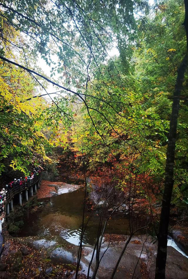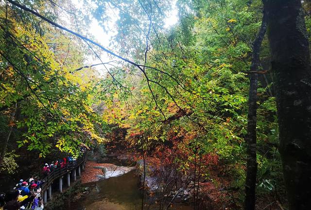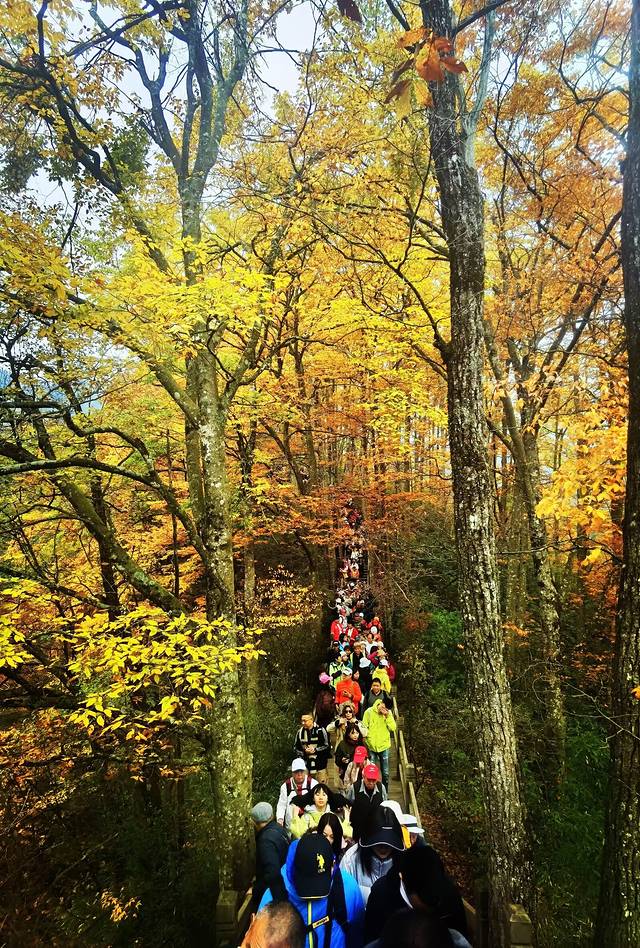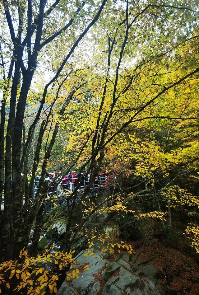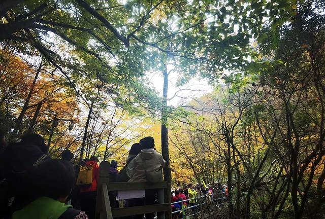 困惑一、天然画廊要被推着走。天然画廊是米仓山的一个出众的景点,景点只有一条木栈道且是单行道,从米仓山大门乘坐景交车首先到达的是天然画廊,然后游客必须全部下去,在一条道上集中游览,好像是千军万马过独木桥。可以想象!一辆辆车接踵而来,一车车游客蜂拥而入,天然画廊能不堵么?在栈道上行走时,几乎是被推着走的!想多停留一会儿,都很困难,体验感不仅很差,还有诸多安全隐患,对于这种状况,我们的困惑是:为什么要全部游客统统地在天然画廊下车游览,人为造成拥堵现状?为什么不在大坝中转站专开一条线路到天然画廊来分流游客?为什么不在天然画廊入口处设置关卡,人多时分批进入、控制人流?十万个为什么……其实!有很多方式方法都可以解决这种拥堵状况,但据说这个景点在“红叶节”期间都是被推着走的。阿欧~至今,对在天然画廊被推着游,我们还耿耿于怀。不过,我们定力还行,在夹缝中停留不倒,还是拍到了很多唯美的画面。
