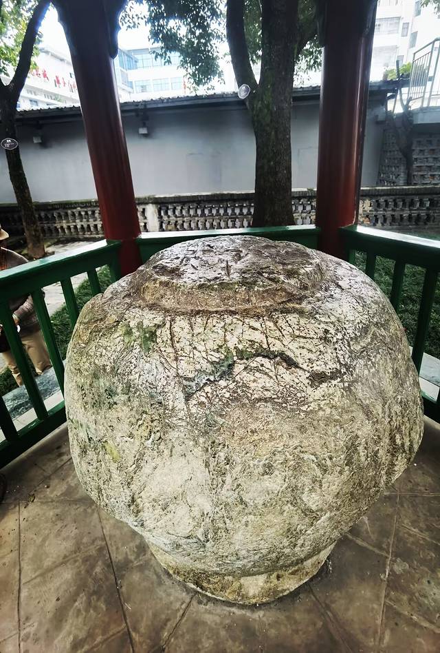2、石鼓亭。石鼓亭位于望江楼西侧,亭内置放着一面年代为汉朝的石鼓,材质:玉,石鼓宽肩、鼓腹、腹下收为圈足,有两处人为的切削面,腹周镌有四个兽面耳饰,表面纹路繁褥,整体造型庄重沉稳,优美古朴;这面石鼓被称作“月台苍玉”,也称“月台碧玉”,“月台”指的是古代汉中府署大堂前方突出之的一块平台,“苍玉”指的是一块硕大碧玉雕凿而成的形状如鼓、如础、如容器的石雕艺术品,这面石鼓传说是汉王刘邦的上马石,曾被列为“汉中八景”之一。