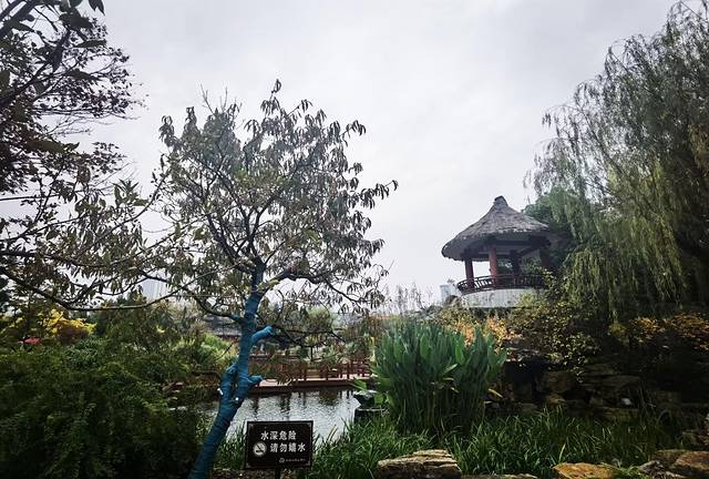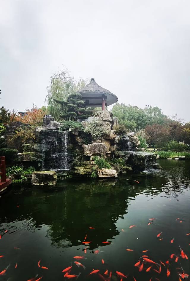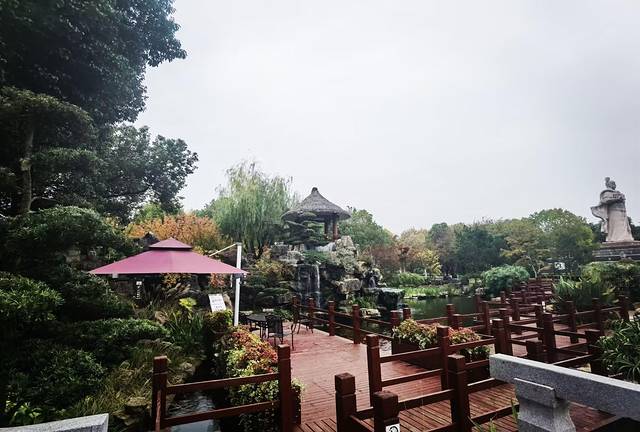在这里,可以徜徉在花草树林,穿行在曲桥小径;在这里,可以聆听小瀑布潺潺流声,喂食锦鲤鱼饵饵鱼食;其实!对我来说,在这里沏茶上一壶香茗,然后悠哉悠哉,不失一份恬淡的闲情雅致,既温暖又享受,有这般小小的惬意,已足矣!当情绪值拉满了的时候,情感自然而然地宣泄而出,于是,码诗抒情,感叹此行:林间隐小筑,庭前萦轻雾。池畔茶一壶,锦鲤伴晨读。