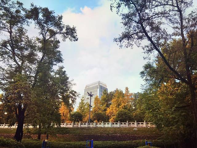走过路过,我们停车逗留了一会儿。公园虽然简简单单,但一路奔波、匆匆赶路后,一眼看到了蓝天白云下的青山绿水,拥抱大自然的强烈感情不由自主地瞬间升起;站在山头,环视四周,远山近峰,尽收眼底,秋风轻撩着树叶野草发出了簌簌地声音,宛如优美的笛声、又似婉转的鸟鸣,时而轻柔婉转、时而激扬热烈,在宁静的山谷里好像奏响了一支悠扬清新的弦乐,让人不禁豁然开朗、舒畅自如。