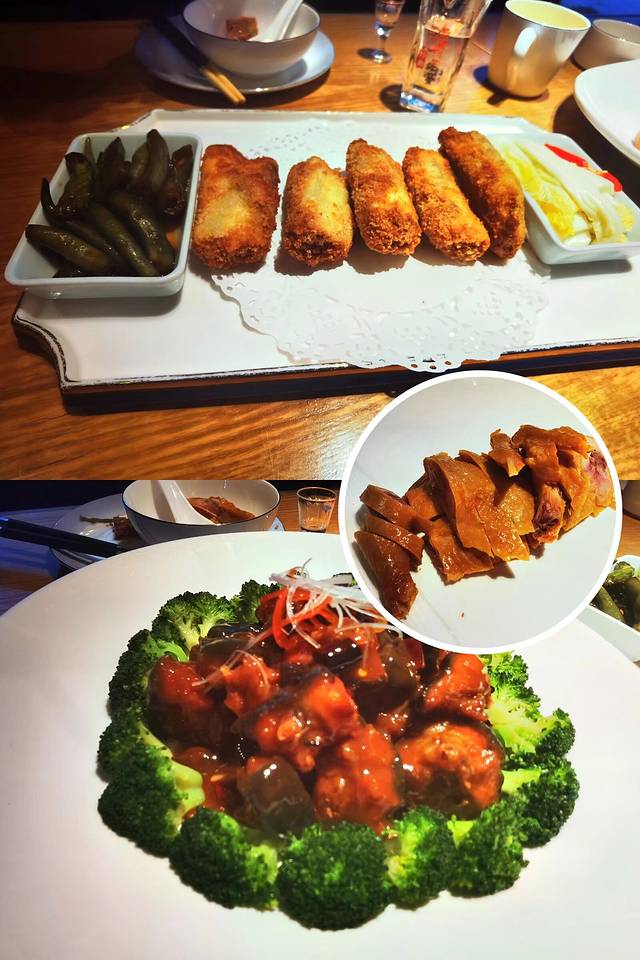 2、在菜品质量与菜式呈现方面。前者既有继承又有创新,菜量一般,比较精致,后者中规中矩,量很大,比较实惠。在前者我们点了三道看家菜:兰花汉水大鲵、特色脆皮米粉肉和五味盐焗鸡,除了特色脆皮米粉肉强烈推荐外,另外两道菜,凉凉!原因是:大鲵是腌制过的,吃不出鱼类的感觉,结果是西兰花倒给我们吃掉了,而大鲵却被我们剩下了,盐焗鸡也没吃出客家菜的味道,比那个大鲵稍微好上口一点,这两道菜还有一个共同点:柴!是不是大厨在做这两道菜时开小差了呀!后者的菜又辣又咸,我们就采取土办法,用凉白开涮一涮再吃,它家的招牌菜椒麻鱼片非常鲜嫩,有点Q弹,不错!尽管辣的够可以~但下饭。对于我们只能微辣的人来说,太辣真要命!