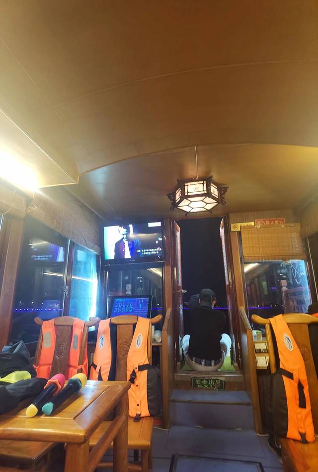 夜游汉江的人少得可怜,工作人员说:今天夜游只要30元/人,纳闷之余,还有点窃窃自喜,打了个对折,碰上好运气了。我们去的时候正好遇上一对母子也来夜游汉江,于是我们友谊的小船儿出航了!船老大很是热情,茶水瓜子伺候,还一个劲地催我们点歌,顿时一股暖流涌上心头!尽管音箱话筒糟糕的一塌糊涂,但盛情难却,就吼一吼吧。