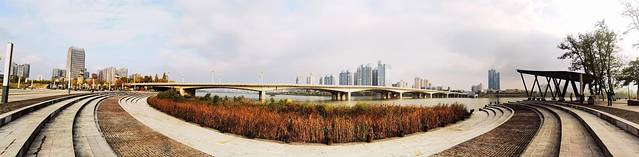 在汉中逗留期间,城市风貌让我们最有触感的,当属主城区的一江两岸风光带。这条风光带全长约5~6公里,是汉江汉中段里最美的一段,设计感十足,创意性、艺术性和功能性新颖独特,给人耳目一新之感,行走其间,不知不觉会引发出一种强烈的情感共鸣。