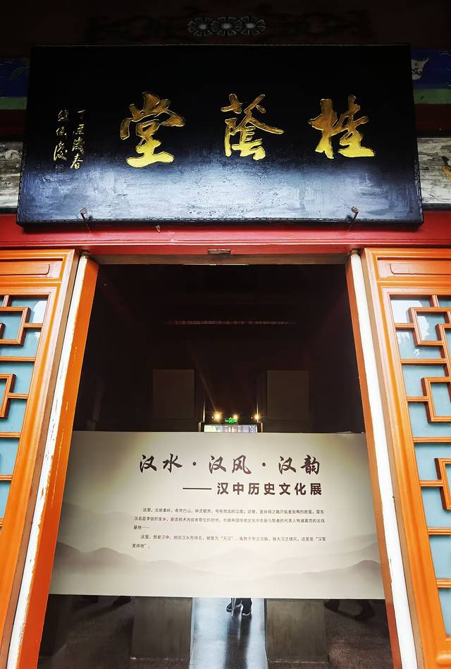 3、桂荫堂。桂荫堂与望江楼面对面,为明代所建,东西两面的东华厅、西华厅为现代新建,我们去的时候,正在展览《汉水·汉风·汉韵——汉中历史文化展》,桂荫堂前有几棵古桂树,正芳香四溢,据说是汉中城内寻香访桂的好去处。