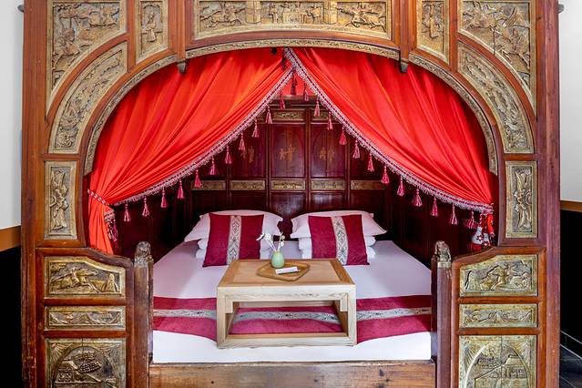 喜欢安静小院的就去他家,上下两层明清小院,门口有绿植点缀,和 丽江 的风格很像,扶梯上面也有雕花,布置的特别精致。服务也没得说,有时候可以蹭饭哈哈哈~价格相对低,性价比高,龙凤床很有穿越感觉,可以试试