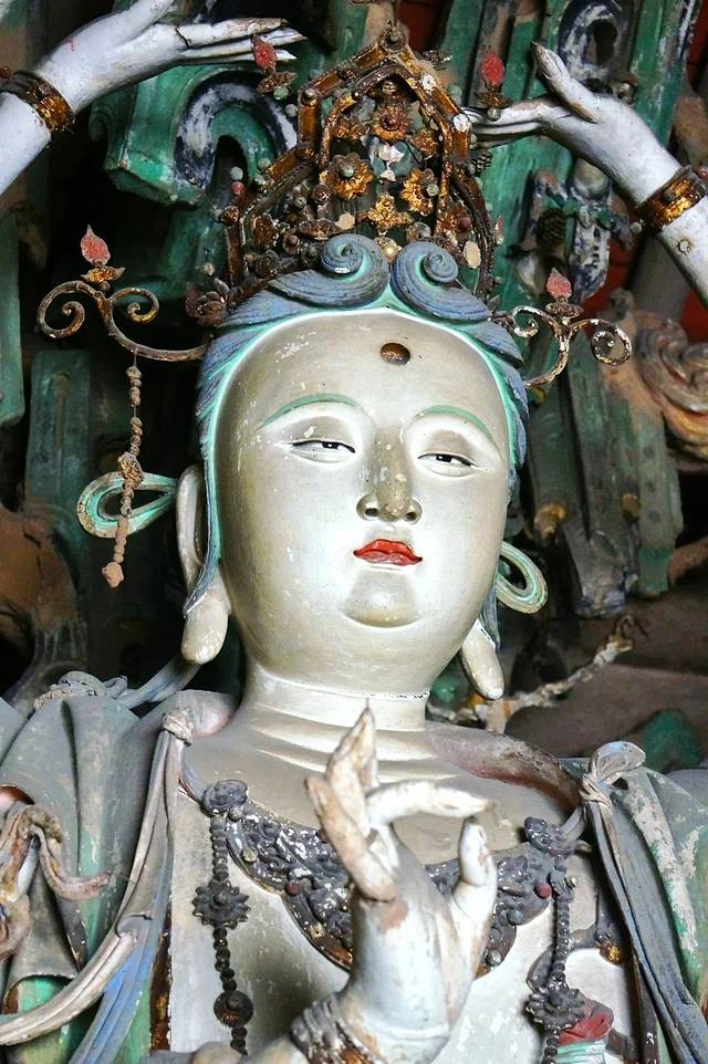 更让我意外的,是这尊锐目如鹰的韦驮 菩萨 ,居然就立在比水与月还温柔的自在观音前面,却彼此相容,一个愈加犀利,一个更添温情,构成了超脱个体的第五重矛盾对比。这是六百年前思维与智慧的存续,是超越时代的妙笔。