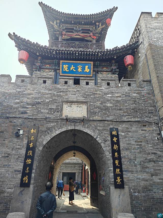 这是马家大院的大门楼,比乔家大院的门楼还要高大气派,有三层。以规制严谨、功能齐全闻名。它集建筑、民俗、起居、商贾于一体,成为了 平遥 古城内建筑装饰风格的代表,可以说是极富艺术魅力、极具观赏价值。