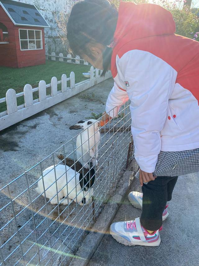 我们住的民宿叫叶卡,比较适合带小孩入住,他家养了好几种小动物,如果夏天去还可以在院子里烧烤,还在横道河子边上,可以领孩子在河边玩。