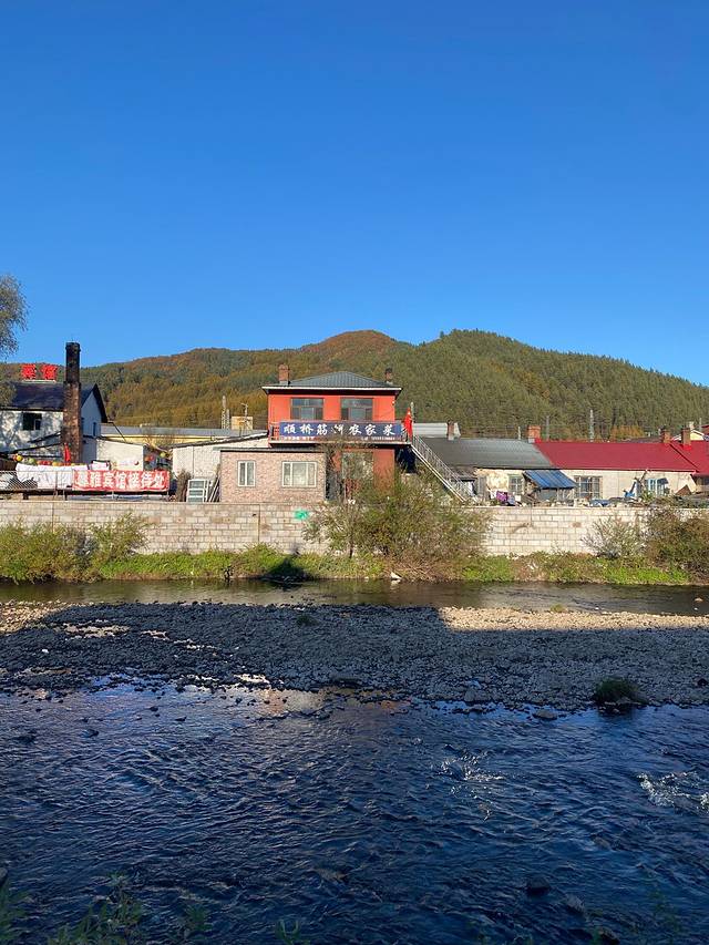 早上吃完饭就去打卡所有的景点,镇子很小一上午能把所有的景点打卡完,十点以后就开始热上了,下午在河边玩了一下午,一直玩到太阳要落山有点凉了我们才去吃饭,晚上吃的铁锅炖,没什么可照的,我不推荐大家去吃铁锅炖,镇上的铁锅炖就那一家是新开的,没什么好吃的主要太贵了,我感觉在哈尔滨我们吃个铁锅炖100多块钱吃的饱饱的。在这吃三百多太黑了,而且还不咋地,不推荐。还是去吃筋饼吧~!