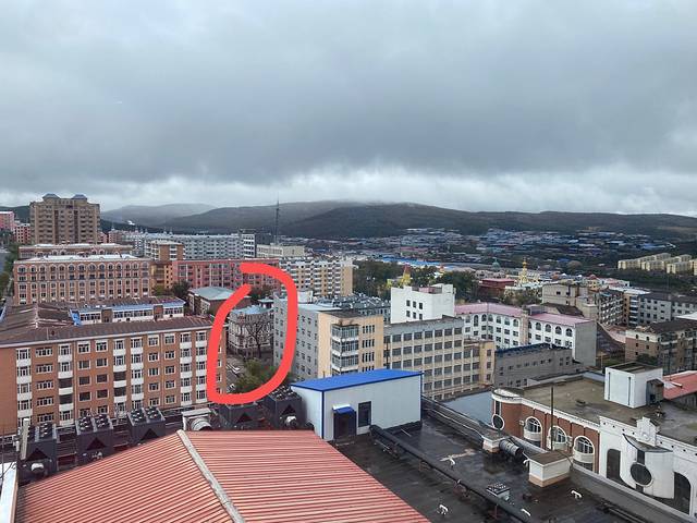 我住在绥芬河广场上的旭升国际商务酒店,地理位置好,从酒店就能看见人头楼。