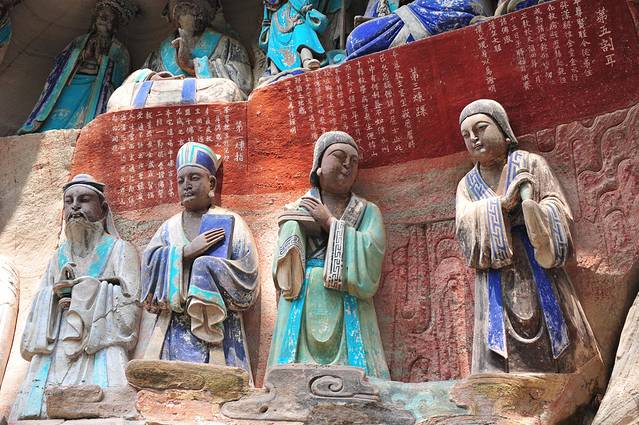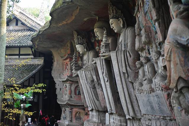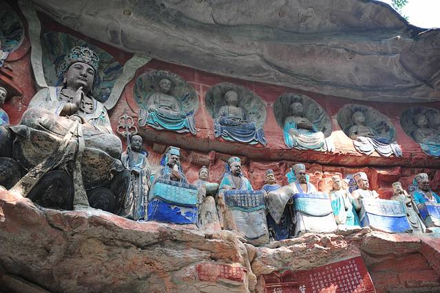踏上了前往 [大足石刻] 的旅程。北有敦煌,南有大足。世界八大石窟之一,大足石刻开凿于唐宋时期,人类石窟艺术史上最后的丰碑。这座古老的精美的雕刻一共分为五部分,①宝顶山石窟②北山石窟③南山石窟④石门山石窟⑤石篆山石窟。目前只有宝顶山和北山开放。请专职讲解费用有点贵。我是微信扫码15元的电子讲解也很到位哦。