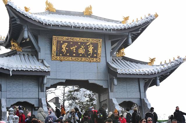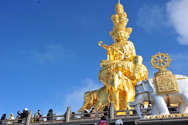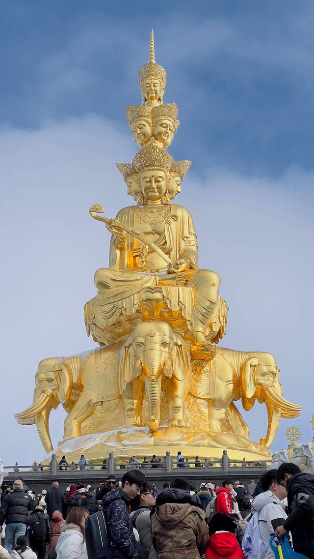 全天游玩峨眉山。金顶:是峨眉山的标志性景点,冬季白雪皑皑,华藏寺的金色屋顶与巨大的十方普贤菩萨像在冰雪映衬下更显庄重圣洁。这里是观赏云海、日出、日落和佛光等自然奇观的绝佳地点。我们这天因为酒店里景区比较近,上午睡了个懒觉。九点酒店出发。结果淡季不淡,人好多呀。排队还是排队😵💫最不可思议的是观光车下来后走步行阶梯,那个冰结的厚厚的。只看见捡垃圾的工作人员没有铲冰雪的工作人员。这些冰雪有白有发黄的,嘿嘿:懂了伐😏所以,冬季一定要自备防滑鞋或携带冰爪,否则上下爬金顶够你受的😄。
