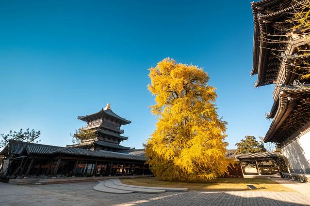 寺庙前身建于元代,古濮川八景之一“福善翠冷”所在地;也是濮氏第六世孙舍去银杏树旁官邸屋宅修建。濮院地标建筑“福善塔”,就在寺庙之中。唐宋时期风格建筑,宏大、雄伟。历经变迁,旧址建筑不在,银杏却巍然而立千年,是濮院的精神象征。去年12月底,有一场重大活动,倪妮、景甜、刘宇、伯远、黄梦莹一众明星在此与之合影。