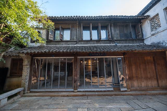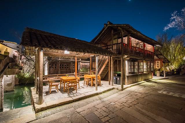 西·蚬子滩客栈:坐落濮院古镇烟火气之地,清晨上午景色特美,出门爬北更楼,打更茶楼、灯笼铺、永记白铁行、陈阿婆油墩铺、市民咖啡、濮迹糖水铺等很适合打卡。临河夜景很美,夜间花船夜游就在客房窗前。