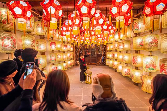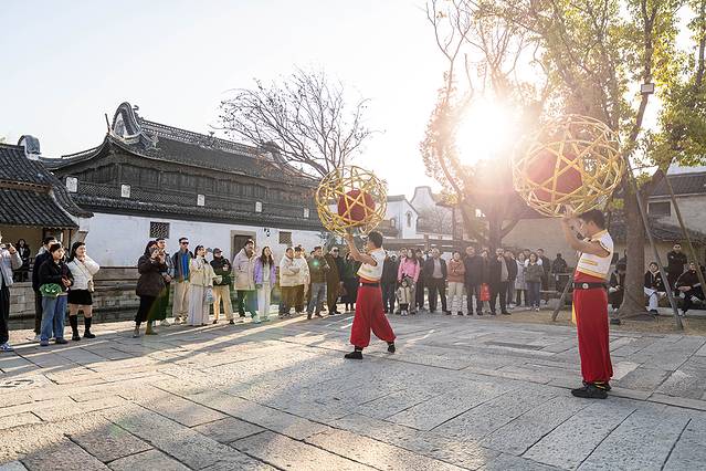 岳氏三进士第·非遗提线木偶戏,指尖拨动丝线,出神入化,小朋友看的目不转睛; 嘉兴 本地国家级非遗滚灯,春节期间精彩上演,每天4个场次,12:50/13:50/15:50/17:30。