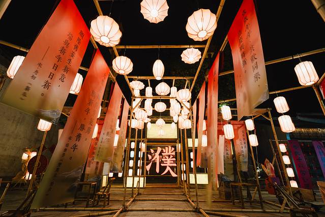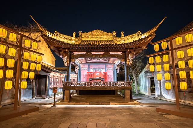 濮商会馆双面戏台· 桐乡 非遗项目曲艺《三跳》,三跳是用三块竹板作为打击乐器,又称“农家劝书”与 绍兴 莲花落齐名,从明代开始至民国时期盛行 桐乡 。虽然不能完全听懂,但传承人声情并茂,情境代入感不错;寺湾街·瓦舍说书《古韵今谈》,以福善塔为背景,夜间非常美。