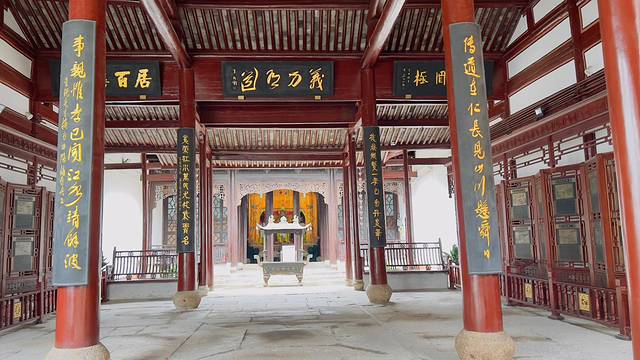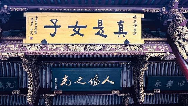 我来到了羊山石城。踏入其中,仿佛进入了一个奇幻的石头世界。高耸的石壁、形态各异的石头,仿佛是大自然精心雕琢的艺术品。石壁上的雕刻栩栩如生,诉说着古老的故事。沿着小径穿梭,每一处转角都有新的惊喜,让人不禁感叹人类艺术的巧妙巧夺天工。接着我们驱车「曹娥庙」。这座庙宇庄严肃穆,是为纪念孝女曹娥而建。曹娥庙在二年前我曾到访过,只可惜那次闭馆装修,那天正好台风登陆,我冒着大雨只看了个寂寞。这次如愿踏入庙门,精美的雕刻、古朴的建筑风格映入眼帘,让我觉得不虚此行。庙内的匾额、楹联等文物,无一不彰显着深厚的文化底蕴。曹娥的孝行故事感人至深,漫步其间,仿佛能感受到那份跨越千年的孝心与敬意。
