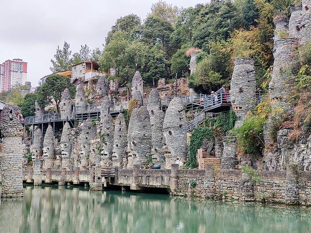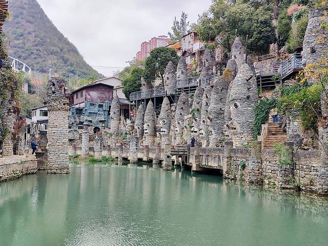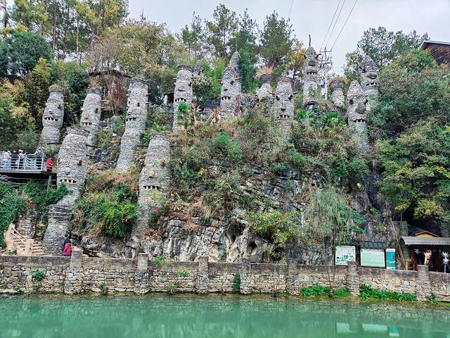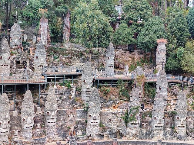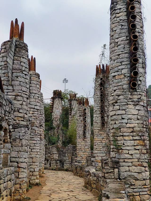 第二天的旅途在花溪,夜郎谷和青岩古镇。花溪夜郎谷位于贵州省贵阳市花溪区境内。占地200多亩。与花溪夜郎谷相对的斗蓬山相传曾是夜郎王后继金竹司的住所。山顶上至今仍保留着古夜郎屯堡的遗址,花溪夜郎谷也因此得名。1994年,宋培伦受美国南达科他州疯马山创作者、著名雕刻家克扎克“愚公移山”般的精神所激励,回国后打造夜郎国。为了减少作品创作过程中的干扰,整个夜郎谷皆由宋培伦个人出资打造。为了降低建造成本,夜郎谷大多就地取材。这个神秘的石头王国还在持续建造中。