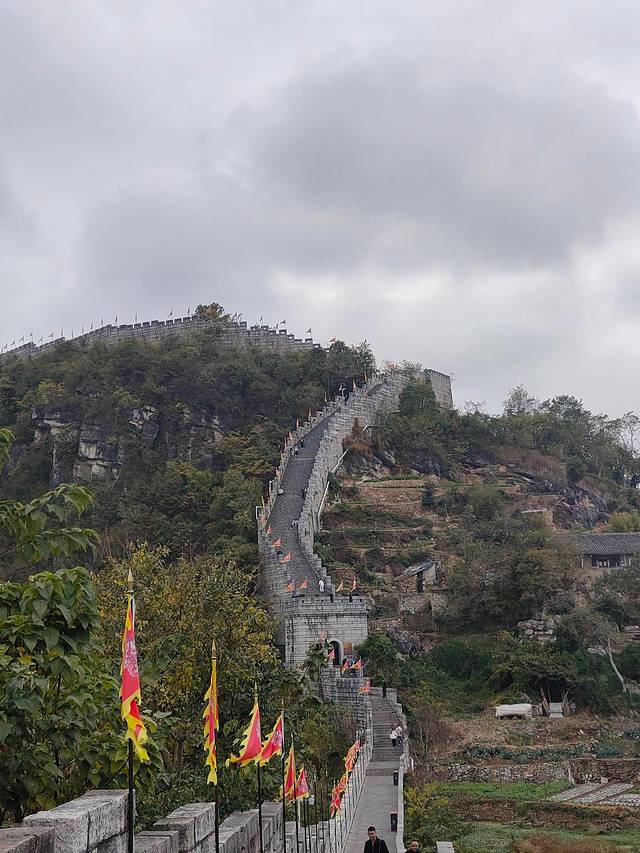 青岩古镇为明清两代军事重镇,青岩古镇城墙在山岭上环绕,绵延约两千米。
