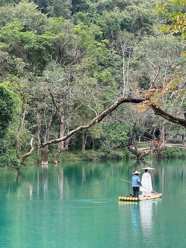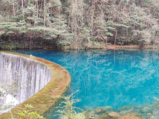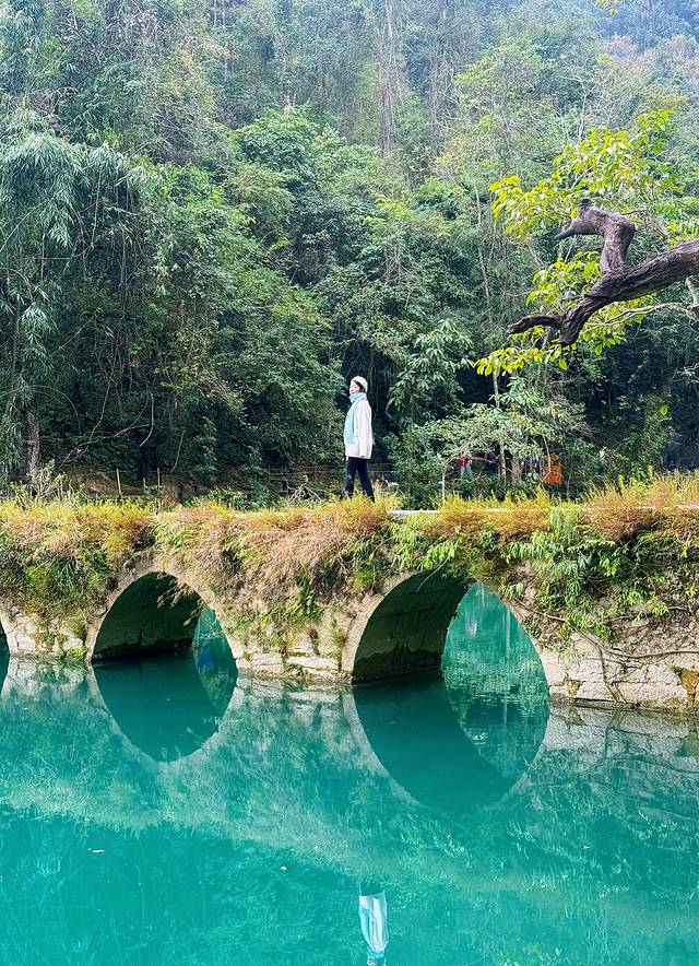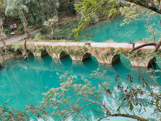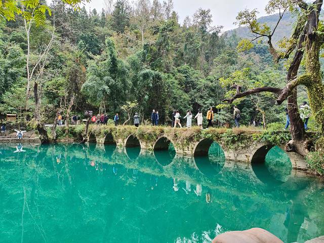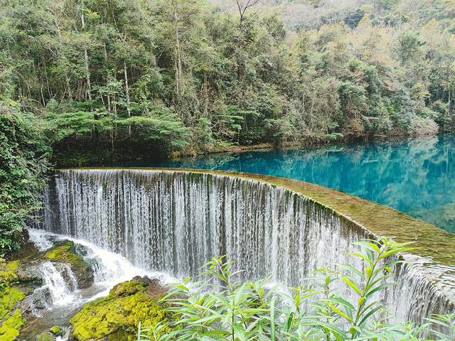 小七孔位于荔波县,”荔波“——多么动听的名字。这个地球腰带上的绿宝石,因为有了幽绿的樟江和生态保存最完好且绝无仅有的喀斯特地貌而得名。景区内河水碧绿,清澈见底,成群的鱼儿游动在水中,清晰可见,快活自在。再加上地势变化,形成的一道道大大小小的瀑布,发出叮叮咚咚、滴滴答答的声音,给整个景区平添了不少趣味。