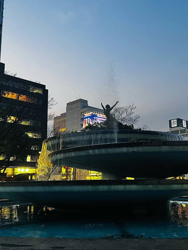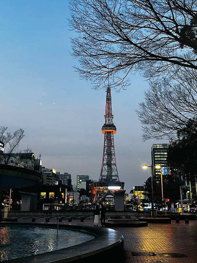 出来的冷空气真的太棒了! 然后就碰到一个老爷爷在那欣赏电力塔夜景和旁边的喷泉⛲️。 名古屋本地人应该对这个象征城市标志的电力塔感到尤其亲近吧
