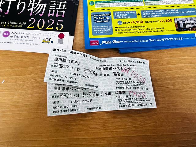 浓飞巴士的运行范围涵盖了大部分北陆景点。从巴士总站高山站出发去新穗高、白川乡、金泽等都有车班。有些线路是只接受预约制(例如白川乡),有些是..(个人称为)占座制(例如新穗高)。