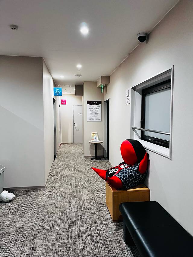 里面有高山市的代表小忍者🥷娃娃~ 最爱最爱这里的大浴场,每天的行程下来的累+冷都可以在浴场里慢慢平静下来、恢复体力。每天都超期待去的!而且女浴场为了安全考量也会每日更换一个进门密码,每天不同房客问前台要即可。 ♨️