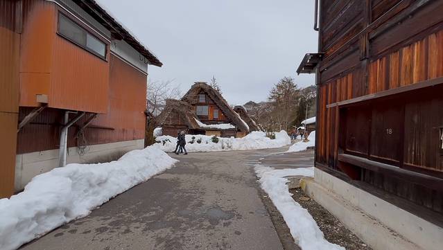 参观时候重点的非遗合掌村建筑需要脱鞋参观 地面很干净但凉凉的 需要穿厚一点的袜子 外面也是路上有融雪 最好穿不怕潮湿的鞋