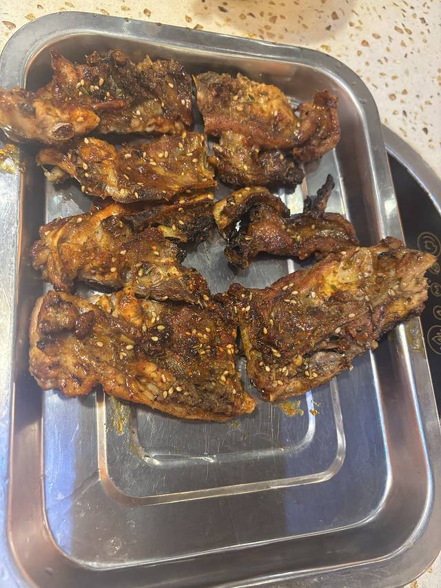 晚上找了一个附近的小烧烤店 吃了喷醋鸡架还没可以吧 酸酸甜甜的