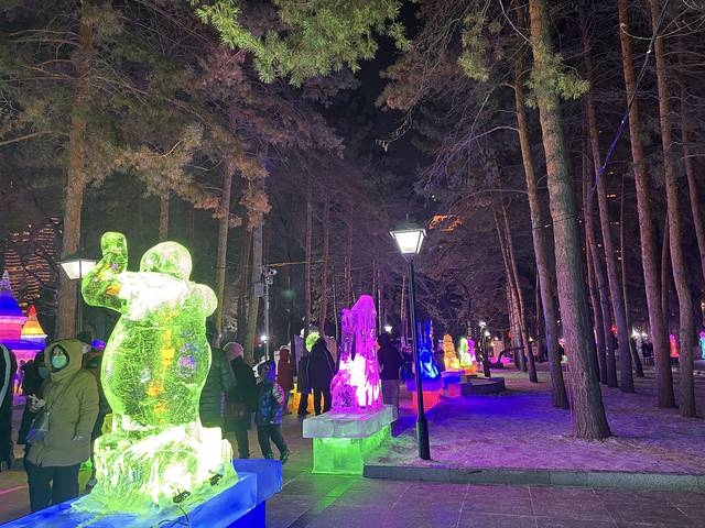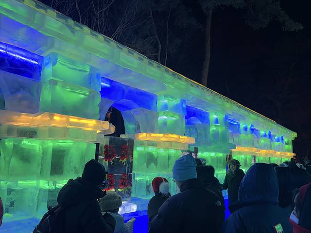听司机说 兆麟公园其实是冰雪大世界的前身 这里的冰雕都是参赛的 很精致 冰雪大世界的都是大型的 所以要先在这里 再去大世界 这里也有一些娱乐项目 还有冰迷宫