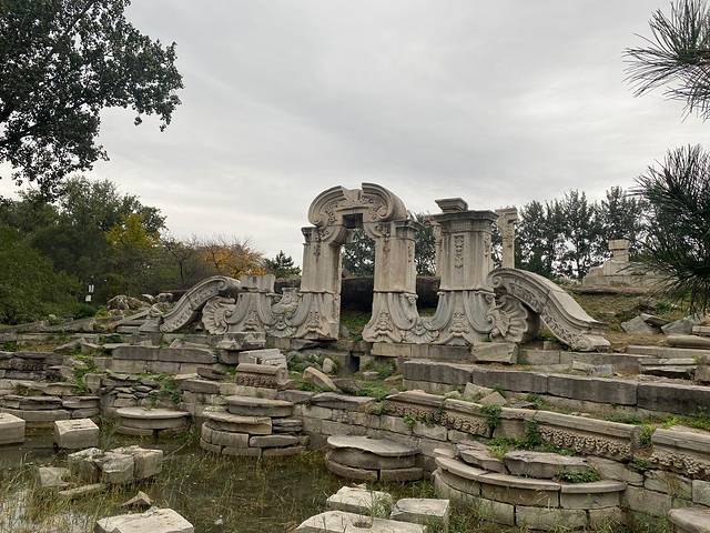 一开始的计划想去长城,后来爸妈觉得爬不动,我们就改去颐和园加圆明园。报了一个一日游,就是一个大散团。我报的团是上宾馆接,散团不管送,而且到圆明园导游就走了,就剩圆明园景区导游讲解了。我们去的时候是10月18日大水法的小门票是不要钱的,因为那天是圆明园的遇袭日。但是导游没有说还是收我们二道门票了,所以啊这团就是个混乱的团,真是太一般了。