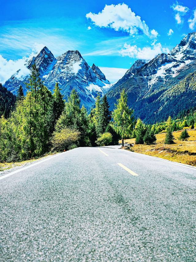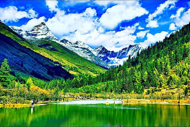蓝天下的雪山、森林边的湖泊,五光十色。蓝得透彻、白得纯真、绿得养眼,人间仙境或许不过如此吧。