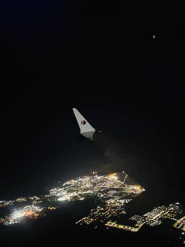 经过三个小时的飞行,我们到吉隆坡的时候,已经是晚上啦