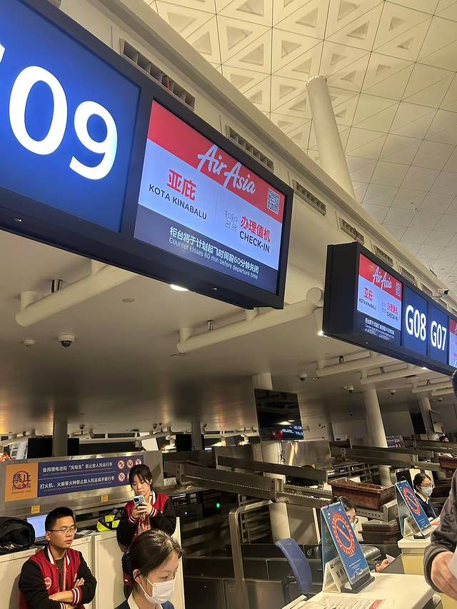 亚航在G区办理。并没有网上说的那样,对行李的标准要求非常严格,还用尺子量箱子尺寸什么的,事实上,工作人员仅称了下重量,我们手上提了不止一个袋子,也没有被拦下,还是比较友好的。