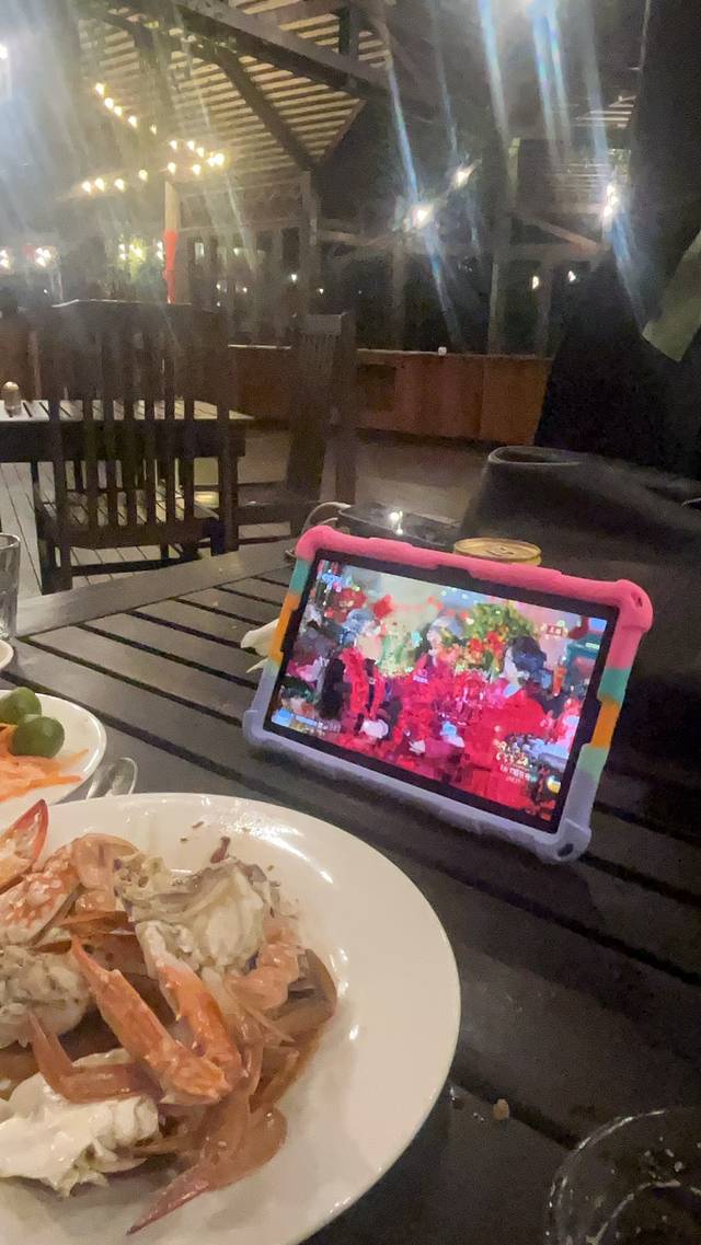 潜完水,休息一下,就去吃晚饭啦,今天是大年三十,除夕夜,我们特地从国内带了一瓶白酒,然后还用pad看了春晚