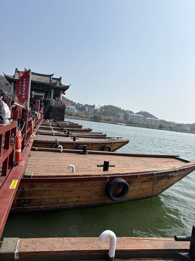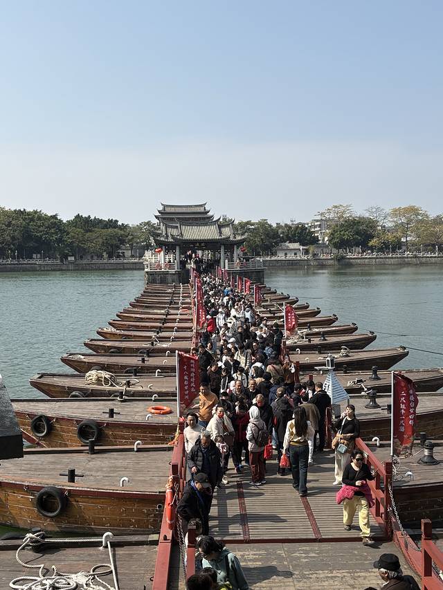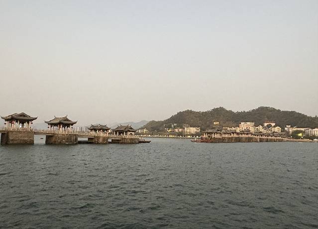 广济桥号称中国四大古桥之一,集粱桥、浮桥、拱桥于一体,白天闭合供人过河,晚上打开供船通行。