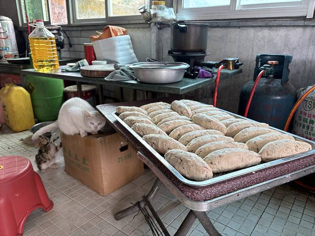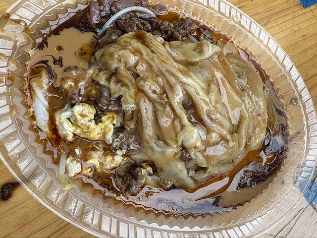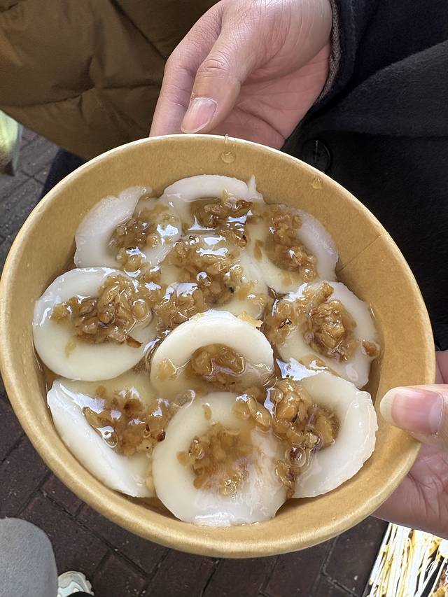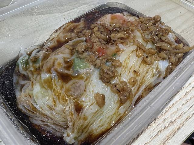 粿本身没味道,上面放了萝卜干,还有特制蜜酱,味道还可以