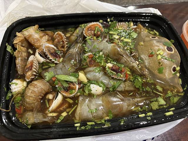 1.我们正吃着鱼生虾生,讨论鱼生配菜该怎么吃,旁边路过一位背着小孩的本地人,听到后立刻自来熟地开启“现场教学”模式。后有一个同样路过的小姐姐突然间大脸凑过来,满脸写着自豪,大声问我们好吃么。