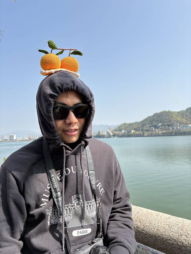 从汕头小公园骑电瓶车到轮渡码头的路上看到了挂满桔子的地标,在去潮州路上与司机聊天得知,潮汕人每到了春节就会在车上、店铺里放桔子,寓意大吉大利。