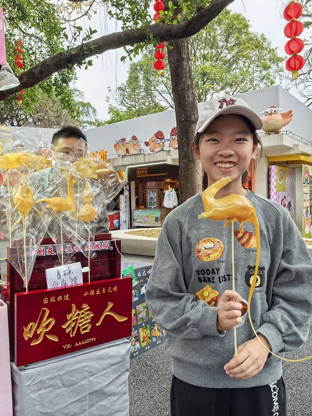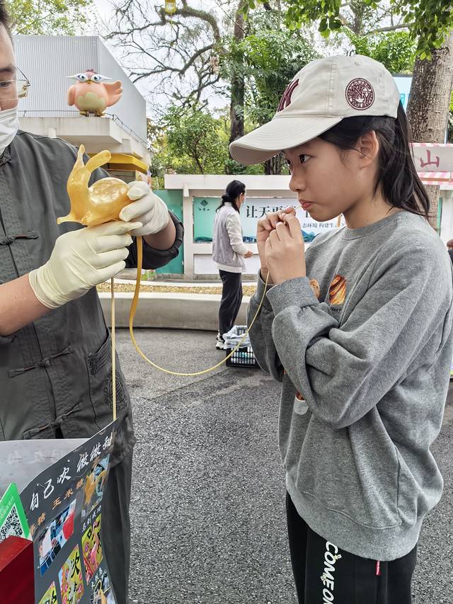 之前都是看到画糖人,这次是自己吹糖人。体验了一把,选这只小兔子25元。