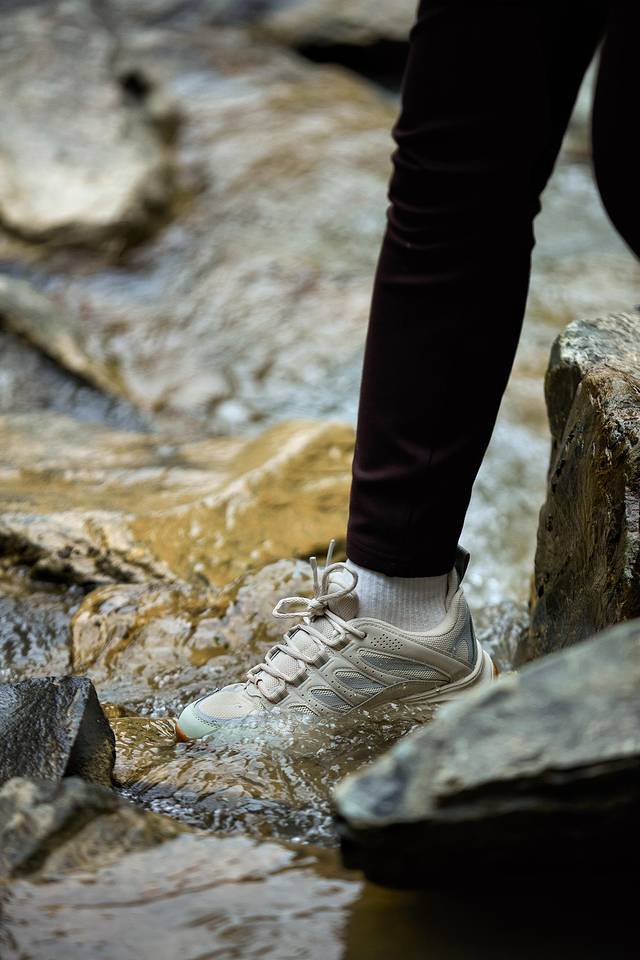 脚上这双新款徒步鞋的立体轻盈防水科技能不惧雨雾、溪流始终保持干爽,我只需尽情欣赏大自然