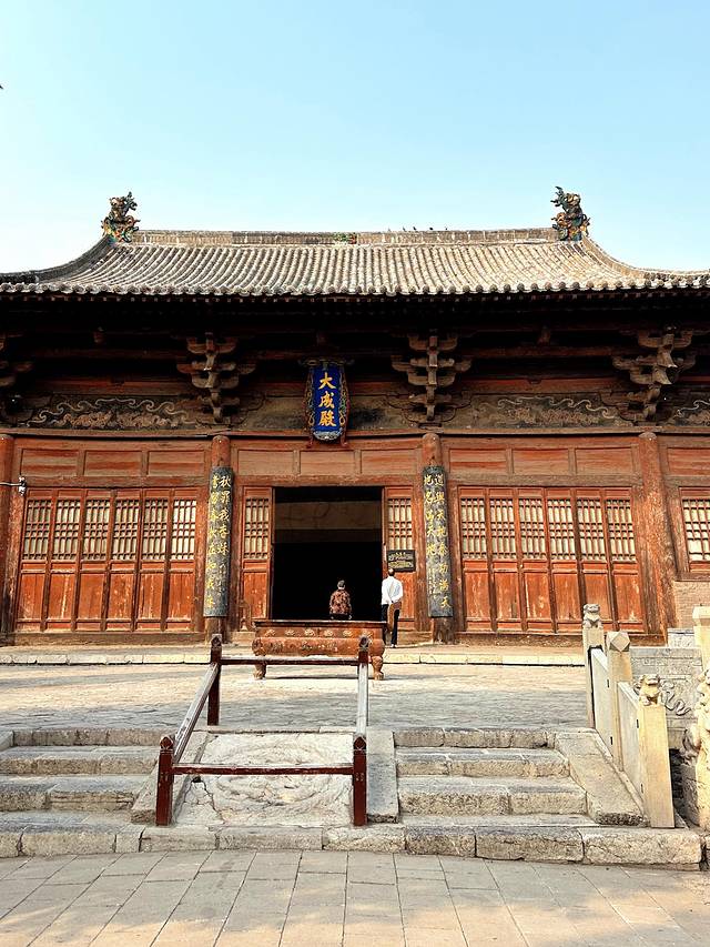 平遥文庙是我国现存各级文庙中历史蕞悠久的文庙,也是中国保存蕞完整的文庙建筑群。主殿大成殿距今已有800多年的历史,是全国文庙中jin存的金代建筑,至今仍保持着原貌。