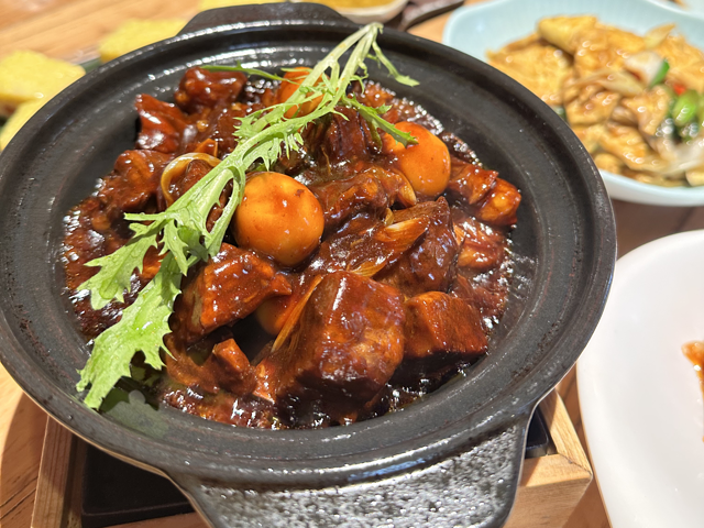 老陈醋焖牛肉:牛肉切得很大块,但是炖得软烂入味,里面还有鹌鹑蛋,汤汁很浓郁,带有一点酸味,很适合拌米饭吃~