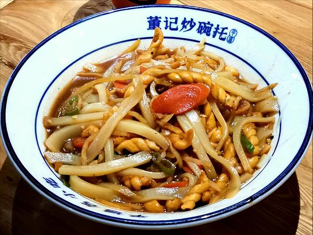 来平遥一定要吃的碗托,有凉拌、热炒两种吃法。天气冷更推荐吃炒碗托,我去的是衙门街的董记炒碗托,他家可以加配菜和碗托一起炒,炒出来记着要趁热吃,炒鸡香!