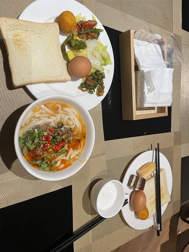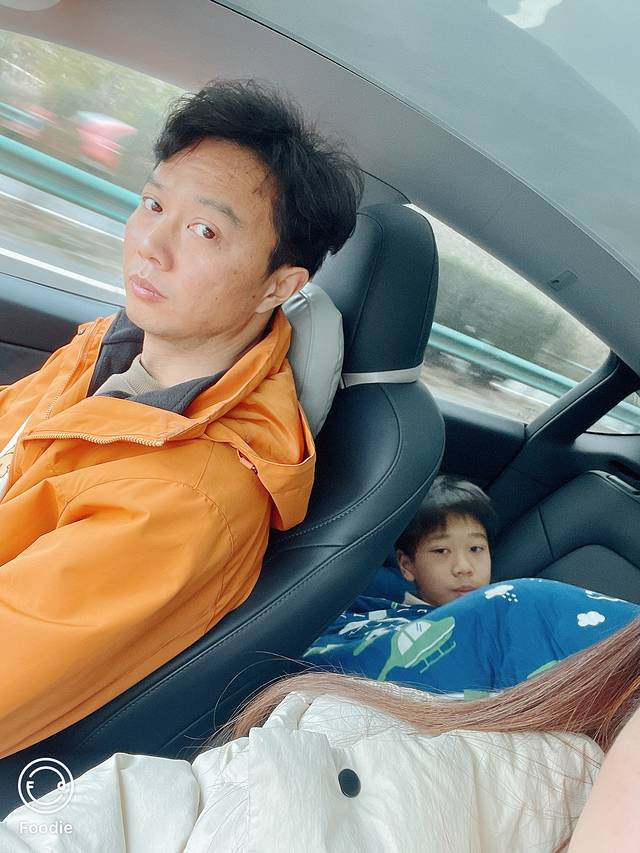 上次我就在后排睡觉了,辛苦老公开车了。感觉路上停下充了次电,后面天就开始蒙蒙亮了。我们的车充满电可以开400,天亮了后我和儿子在服务区吃了早饭~方便面+娃哈哈八宝粥。