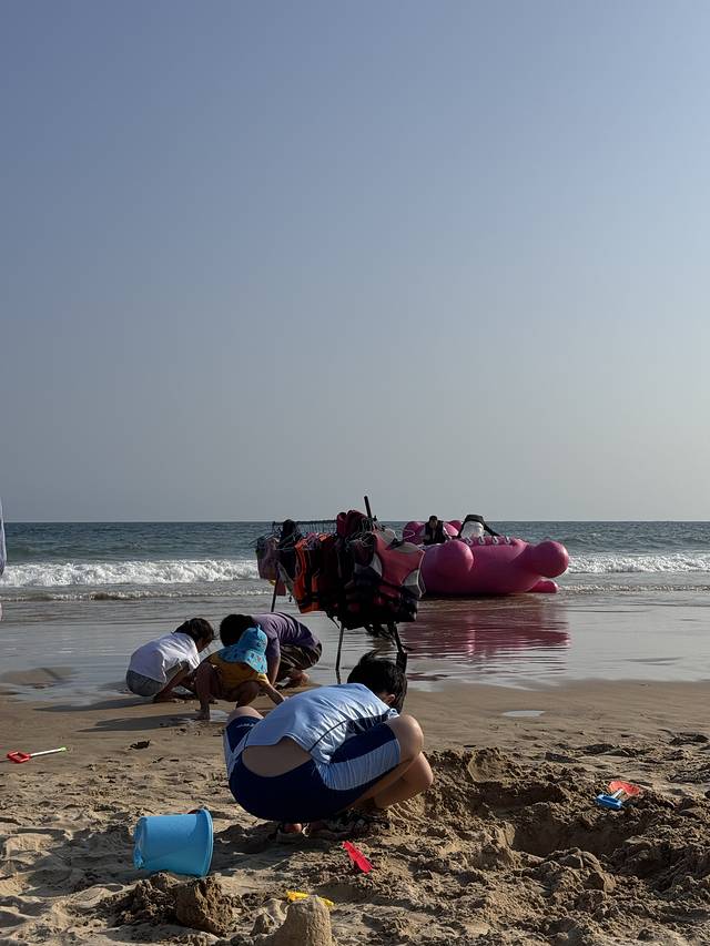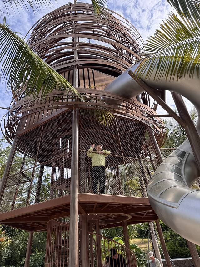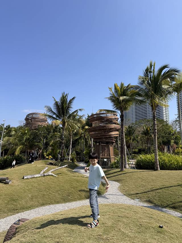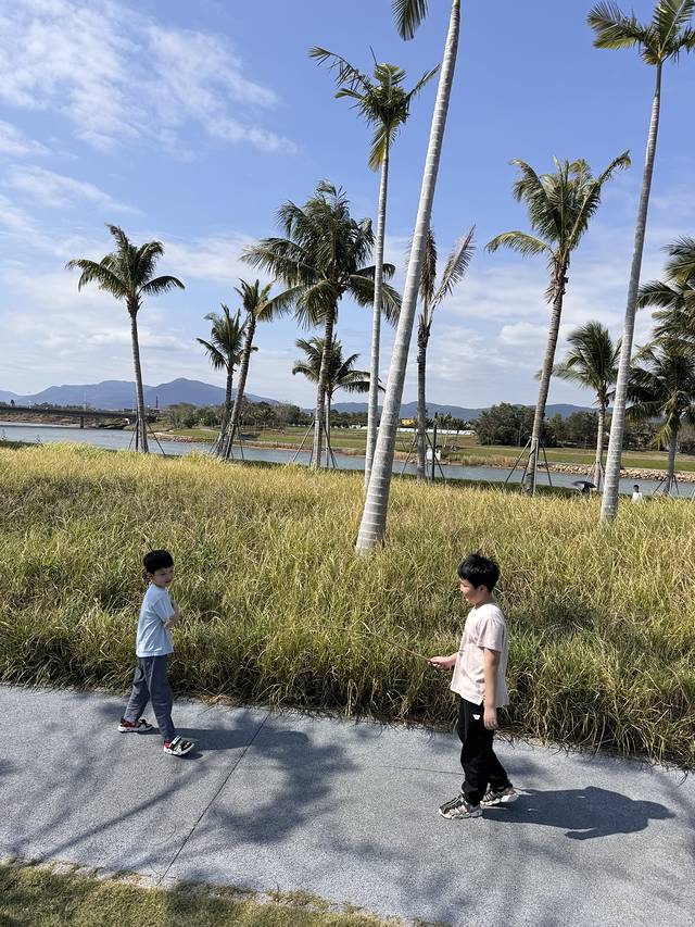 早上在村子里随便吃了点早餐我们就准备离开这里啦~在小红书上种草了海棠河生态公园,看了看距离我们也不远,决定上午带孩子们去那里疯玩两小时~这个公园真的超级超级大,免费!把车停在石姆龙路路边,正好就是一个儿童游乐区的入口,进入公园孩子们就疯狂玩耍,妈妈们疯狂拍照,大片的绿草地,椰树,蓝天,真的太出片了哈哈~玩到快中午我们出发前往陵水爱尚湾度假酒店,330/晚双床房,因为本来计划去南湾猴岛喂猴子就定了这个酒店,不过后来在小红书种草了免费喂猴子的自驾路线虎岭,一人怒省290的门票~去虎岭的路上特别清净,没有车,两边都是绿色的山,景色超级棒~因为春节假期,虎岭不能开车直达海边了,不过政府安排了免费的摆渡车,把车停在村口,直接就有村民来着摆渡车拉你到海边了,虎岭真的是以前特别美的海~