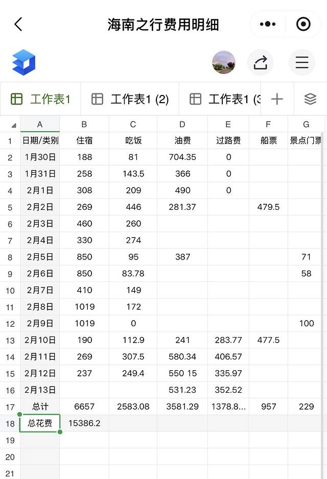 最后附上全程的花费清单~